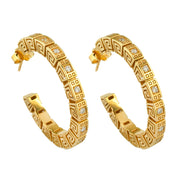 Mythical Greek Key Diamond 3/4 Earrings - 18k Gold - Hoop Earrings
