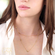 This listing is for an 16 inch Double Strand Pebbles and Stones Necklace, as shown. A great piece to layer with other chains or wear alone, the necklace is crafted from 14k Yellow Gold with "pebbles" and White Zircon "stones".