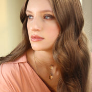 A great layering necklace — it is the bottom one shown on the model. The mixed textures allow for the circles to show and gives the dual-tone look.