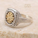 This listing is for a size 13 Alexander Cross Ring, as shown. This ring is crafted from 925 Sterling Silver and 18k Gold and features a comfortable tapered back, making it perfect for every day wear. This ring is a blend of timeless artistry and refined sophistication, perfect for adding a subtle yet striking touch to any ensemble.