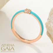 Diamond Cluster Enamel Ring - 18k Gold Ring - Stackable Ring
