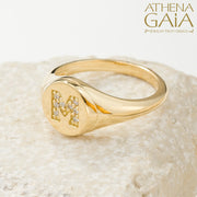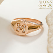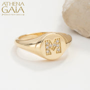 Diamond Initial Ring (Small) - 14k Gold Ring - Signet Ring
