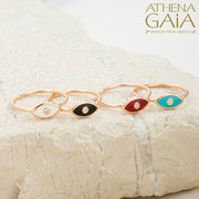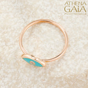 Enamel Mati With Diamond Ring - 14k Gold Ring - Evil Eye Ring