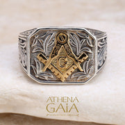 Freemason Masonic Ring - 18k Gold & Sterling Silver Ring - Signet Ring