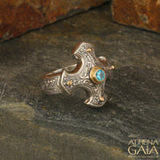 Gold Point Stone Cross Ring - Sterling Silver Ring - Signet Ring