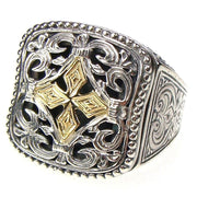 Gold Star Filigree Etched Ring - 18k Gold & Sterling Silver Ring - Signet Ring