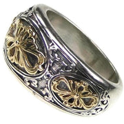 Golden Clover Band Ring - 18k Gold & Sterling Silver Ring - Signet Ring