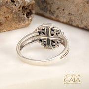 Jerusalem Cross Ring - 18k Gold & Sterling Silver Ring - Signet Ring
