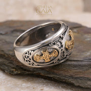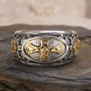 Maltese Cross Band Ring - 18k gold & Sterling Silver Ring - Signet Ring