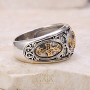 Premium Greek Artisan Jewelry - Handcrafted Club Ring Experience the timeless elegance of this Straight Shank Club Ring, a masterpiece of Greek cra...