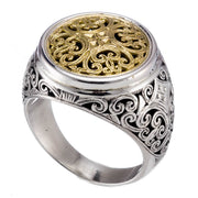 Mediterranean Circle Face Ring - 18k Gold & Sterling Silver Ring - Club Ring