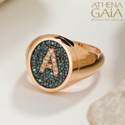 Naxian Initial Ring - 14k Gold Ring - Signet Ring