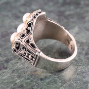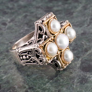 Pearl Eastern Cross Ring - 18 Gold & Sterling Silver Ring - Cocktail Ring