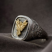 Phoenix Ring - 18k Gold & Sterling Silver Ring - Signet Ring