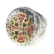 Ruby Cross Synergy Ring - 18k Gold & Sterling Silver Ring - Cocktail Ring