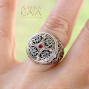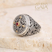 Premium Greek Artisan Jewelry - Handcrafted Club Ring Experience the timeless elegance of this Straight Shank Club Ring, a masterpiece of Greek cra...
