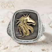 The Horse Talisman Ring - 18k Gold & Sterling Silver Ring - Signet Ring