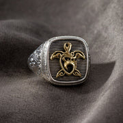 The Turtle Ring - 18k Gold & Sterling Silver Ring - Signet Ring