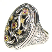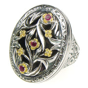 Vines and Flowers Oval Ring - 18k Gold & Sterling Silver Ring - Cocktail Ring