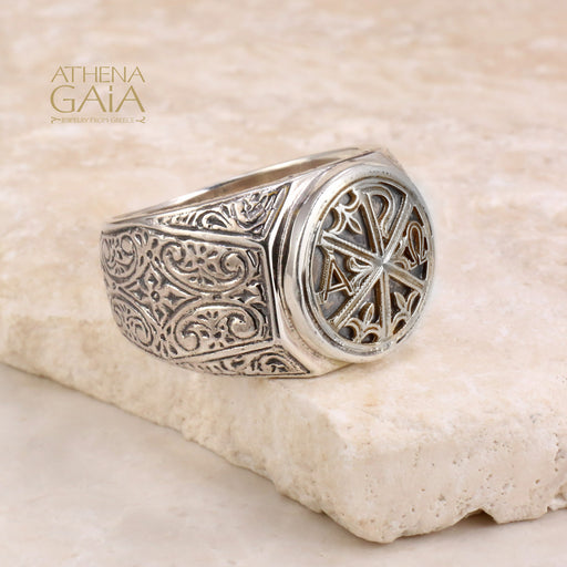 View full detailsChi Rho Sterling Silver Signet Ring - Handcrafted Christian Symbol Ring for Men
