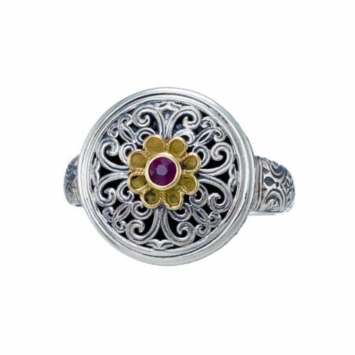 Mediterranean Ruby Flower Ring - 18k Gold & Sterling Silver Ring - Signet Ring