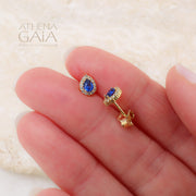 Small Halo Pear Stud Earrings - 14k Gold Earrings