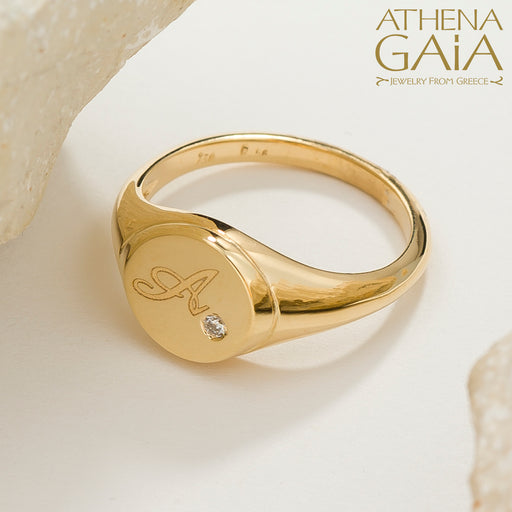 View full detailsNaxian Initial Ring - 14k Gold Ring - Signet Ring