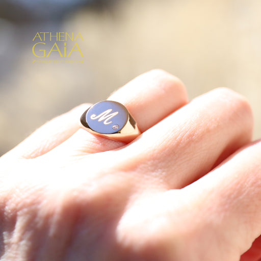 Diamond Initial Ring (Large) - 14k Gold Ring - Signet Ring
