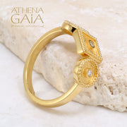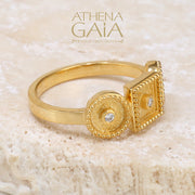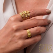 3 Ornament Geometric Ring - 18k Gold Ring