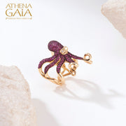 Aegean Sea Ruby and Diamond Octopus Ring - 18k Gold Ring - Cocktail Ring