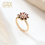 Stars Double Flower Enamel Ring with Diamond