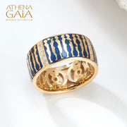 Eternal Women Enamel Ring - 18k Gold Ring - Cigar Band Ring