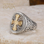 Gerochristo Cross Ring - 18k Gold & Sterling Silver Ring - Signet Ring