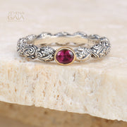 Meadow Breeze Classic Accent Ring (on model and shown with Rhodolite)