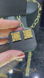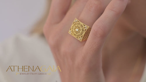 Pyknos Shank Square Grid Ring - 18k Gold - Cocktail Ring