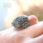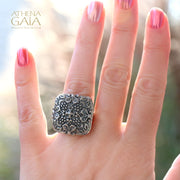 Royal Pillow Cross Ring - Sterling Silver Ring - Cocktail Ring