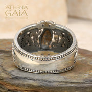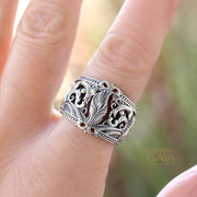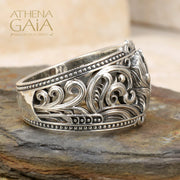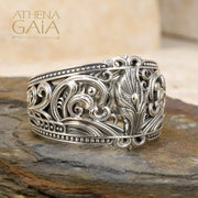 This is a beautiful and highly detailed unisex Silver Waves Filigree Band Ring, crafted from 925 Sterling SilverThis is a wide ring, but it features a comfortable tapered back.