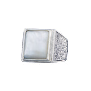 Square Etched Shank Band Ring - Sterling Silver Ring - Club Ring