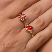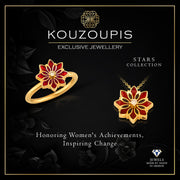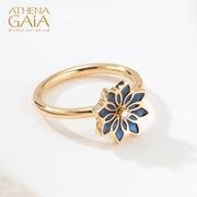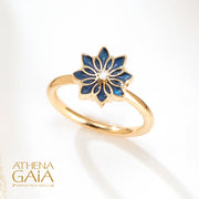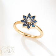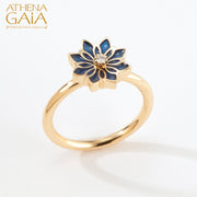 Stars Single Flower Enamel with Diamond Ring - 18k Gold Ring