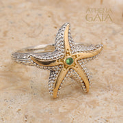 Thalassa Starfish Gemstone Ring (Small) - 18k Gold & Sterling Silver Ring - Cocktail Ring
