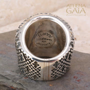 Yianni has quickly become one of our most popular designers. With his workshop nestled in the heart of the charming Plaka district, you'll find his artistry fits squarely in the "Modern Greek Traditional" movement. His choice of material and ornate yet rugged style has expanded the genre in a genuinely new direction, while keeping his prices accessible to everyone.