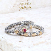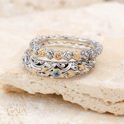 Wild Flowers Accent Ring - 18k Gold & Sterling Silver Ring - Stackable Ring