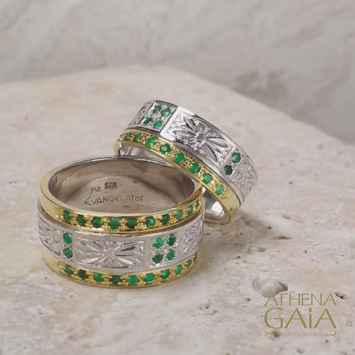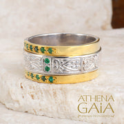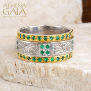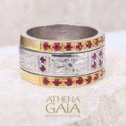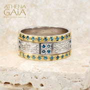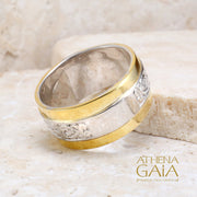 Anthemion Double Row Ring - 18k Gold & Sterling Silver Ring - Cigar Band Ring