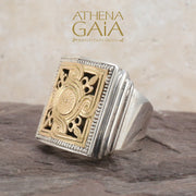 Monastiraki Church Sun Swirl Ring - 18k Gold & Sterling Silver Ring - Club Ring