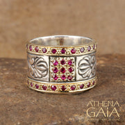 Stone Gold Field Tall Double Ring 18 Gold & Sterling Silver Ring - Cigar Band Ring