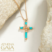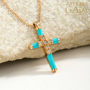 Enamel Diamond Row Cross Necklace - 18k Gold - Latin Cross