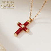 Enamel Cross Necklace - 18k Gold - Latin Cross