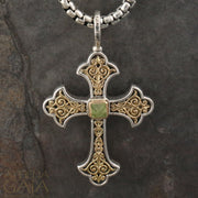 Aretousa Stone Fleury Cross (Medium) - 18k Gold & Sterling Silver - Orthodox Cross