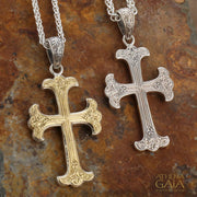 Fleury Cross Necklace - 18k Gold & Sterling Silver - Orthodox Cross