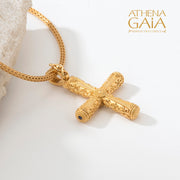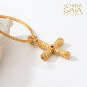 Our Byzantine Orthodox Cross can be crafted in yellow, rose, or white 18k gold. This stunning gold cross features a center and station stones that add elegance and sophistication to any outfit.